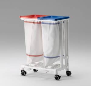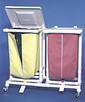 Die stabilen Zweifach-Wäschesammler mit Fußpedalen zum Öffnen der am Rahmen befestigten Deckel. Standsicher und durch vier freidrehende Rollen besonders wendig. Die beschichteten Bügel garantieren eine absolut rutschsichere Sackaufhängung