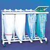 Sie sind standsicher und durch vier freidrehende Rollen besonders wendig. Die beschichteten Bügel machen die Sackaufhängung absolut rutschsicher. Ideal zur Vorsortierung von Schmutzwäsche.